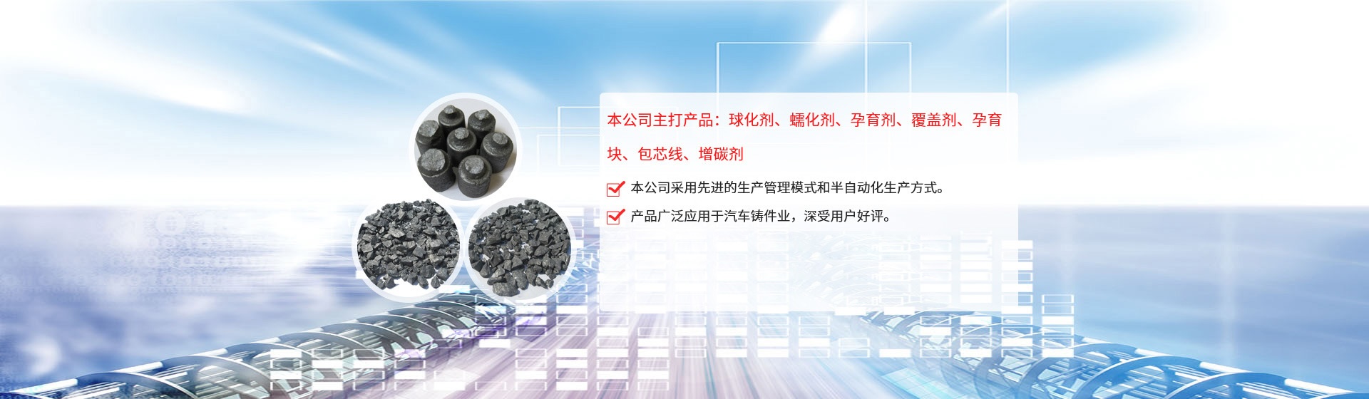 公司引進(jìn)日本企業(yè)的生產(chǎn)管理模式,半自動(dòng)化生產(chǎn)方式。目前生產(chǎn)能力:球化劑250T/月、孕育劑300T/月、鑄造相關(guān)品200T/月。為嚴(yán)格控制產(chǎn)品質(zhì)量,公司采用國內(nèi)的ICP-AES等離子體發(fā)射光譜儀對采購原